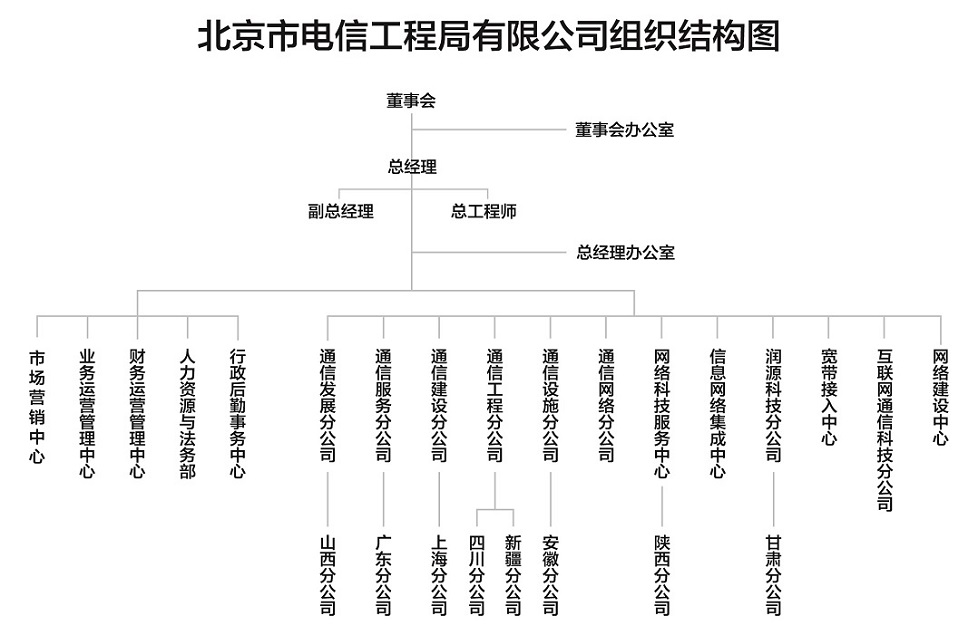 北京市電信工程局有限公司始建于1955年9月1日,是北京市第一家專業的通信工程施工企業,曾隸屬中國電信、中國網通及中國聯通的國有企業。2008年12月成功改制,是中網聯通信發展集團有限公司全資子公司。 伴隨著我國經濟發展的腳步,工程局走過了半個多世紀的創業歷程,是具有多專業施工能力的通信工程總承包壹級企業,